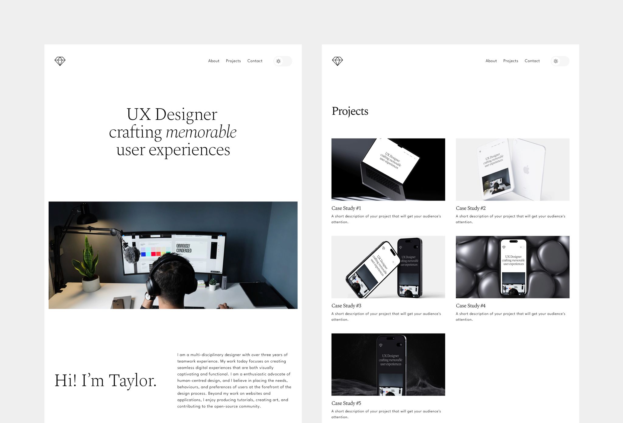 A modern and fully responsive template designed to showcase your expertise in UX design with style and clarity. Preview the demo here: https://etheric.framer.website/ Your purchase includes a link to clone the template on Framer.